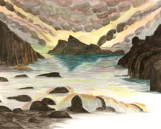 Unfinished painting of part of the Australian Coastline