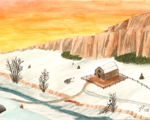 Snow-bound ranch in the Missouri breaks of eastern Montana.