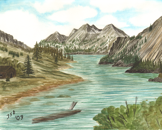 Not an exact representation of the Maroon Bells, I painted this after seeing an image of those high mountain valleys of Colorado!